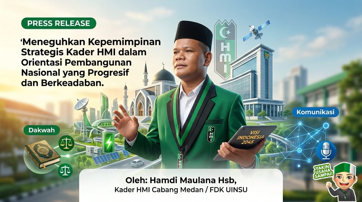MEDAN, 26 April 2026 – Kader Himpunan Mahasiswa Islam (HMI) Cabang Medan sekaligus mahasiswa Fakultas Dakwah dan Komunikasi (FDK) UINSU, Hamdi Maulana Hsb, meluncurkan gagasan strategis mengenai arah baru kepemimpinan pemuda dalam mengawal pembangunan nasional. Hamdi menegaskan bahwa tantangan Indonesia ke depan bukan sekadar persoalan ekonomi, melainkan krisis narasi dan degradasi nilai di ruang publik.